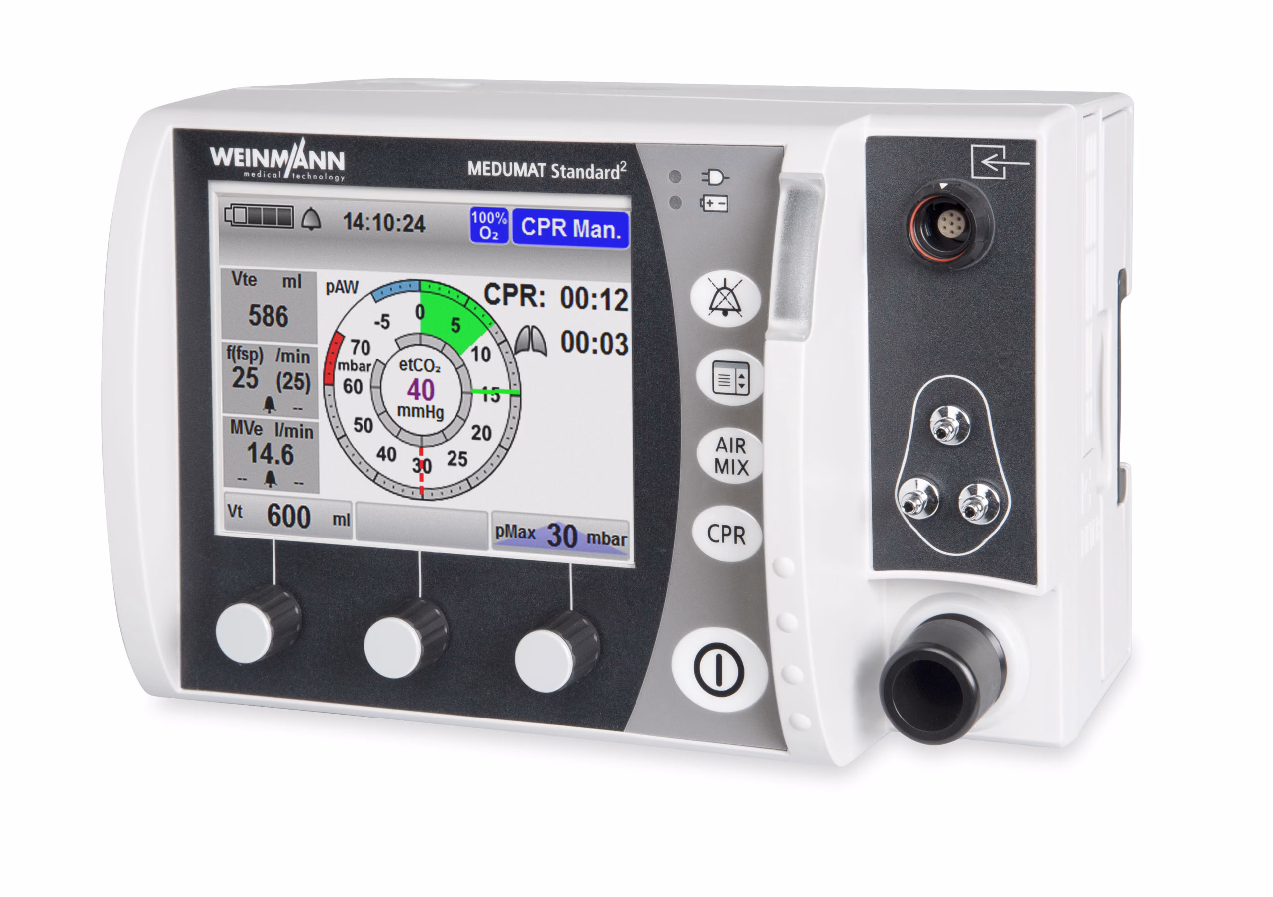 MEDUMAT Standard² is your reliable partner during an emergency response – for the ground emergency medical service and the air rescue service. Numerous features ensure that the intuitively-operated emergency ventilator offers maximum safety in use. Users can select different modes and options for invasive and non-invasive ventilation, which increases patient safety compared to bag mask ventilation.